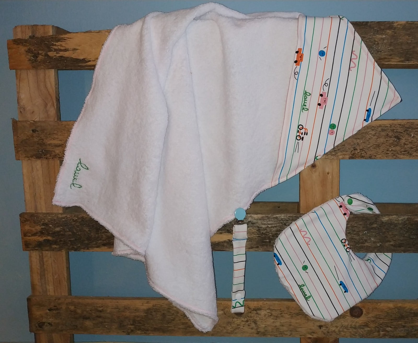 Be the first to review “Conjunto de capa/toalla, chupetero y babero”