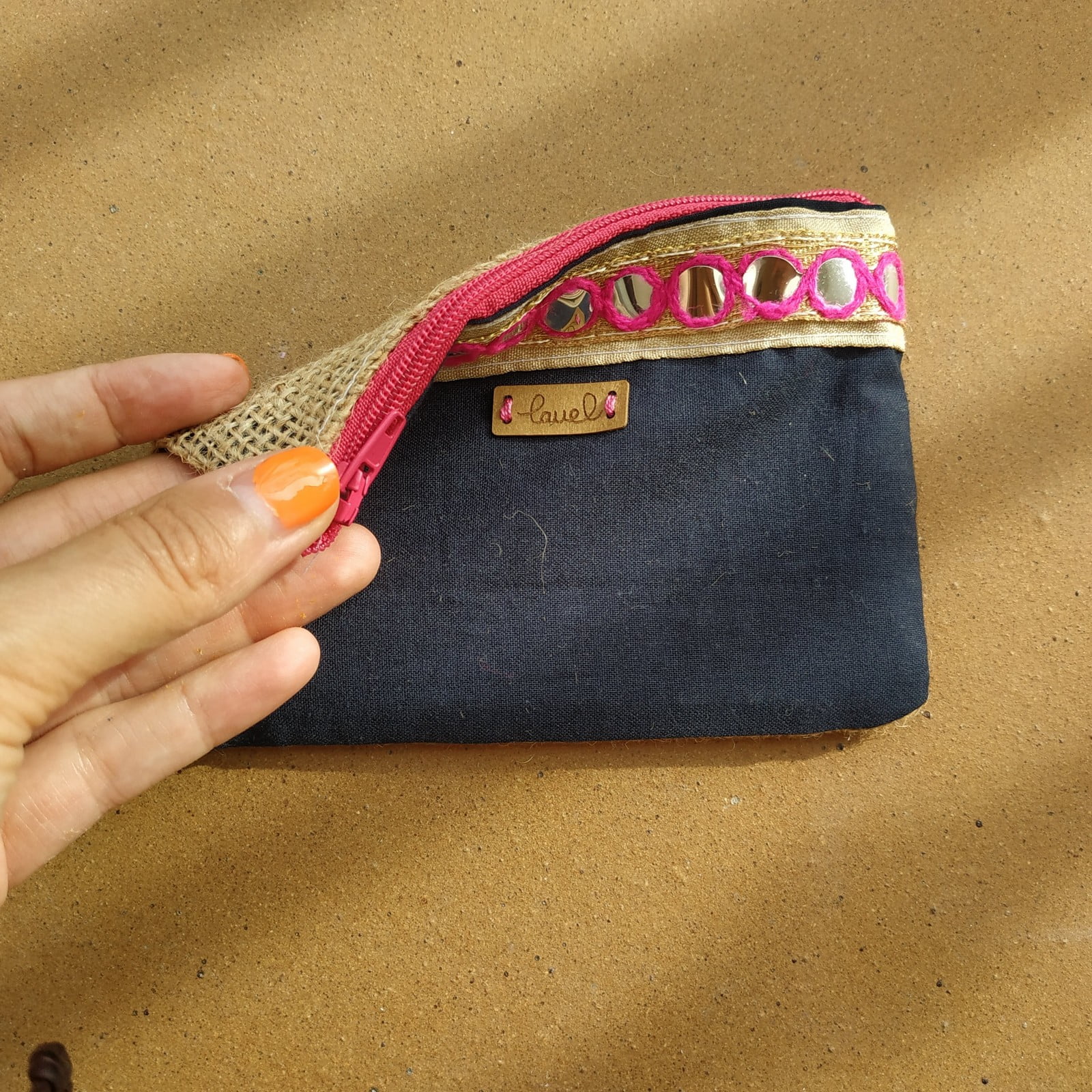 Utilizo pasamaneriía, y yute natural que les dan un aire diferente, mezcladas con diferentes telas. Medidas 14cm x 9cm.