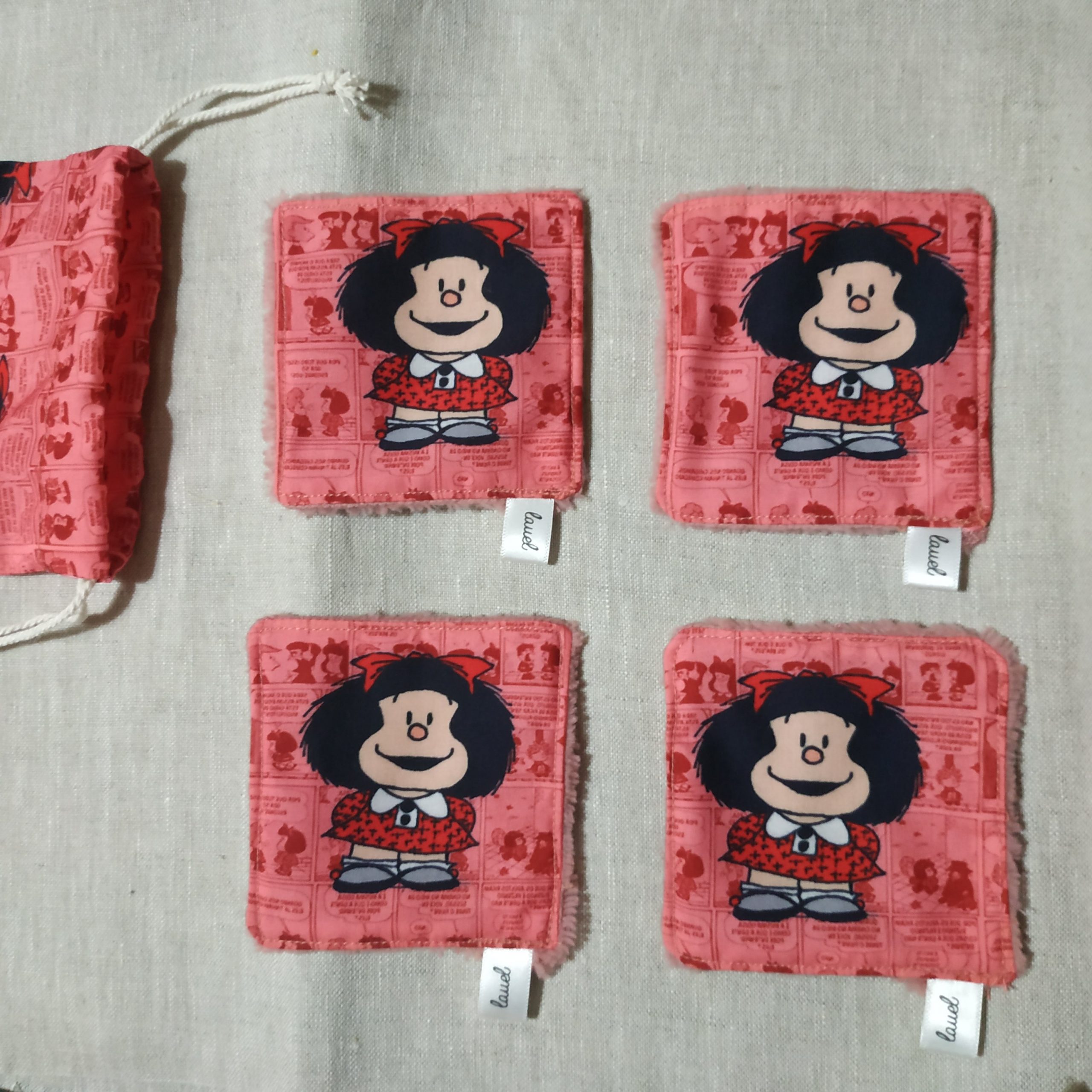 Toallitas desmaquillantes reutilizables hechas con tela de bambú súper suave y algodón. Cero residuo. Cuatro unidades con su bolsita de tela a juego para poder llevar a todas partes.